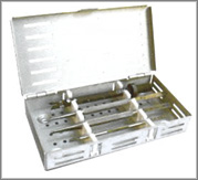 Instrumento aplicador de Coupler, medidor de vasos doble, bandeja de esterilización, pinzas Coupler y pinza aplicadora de clambs.
